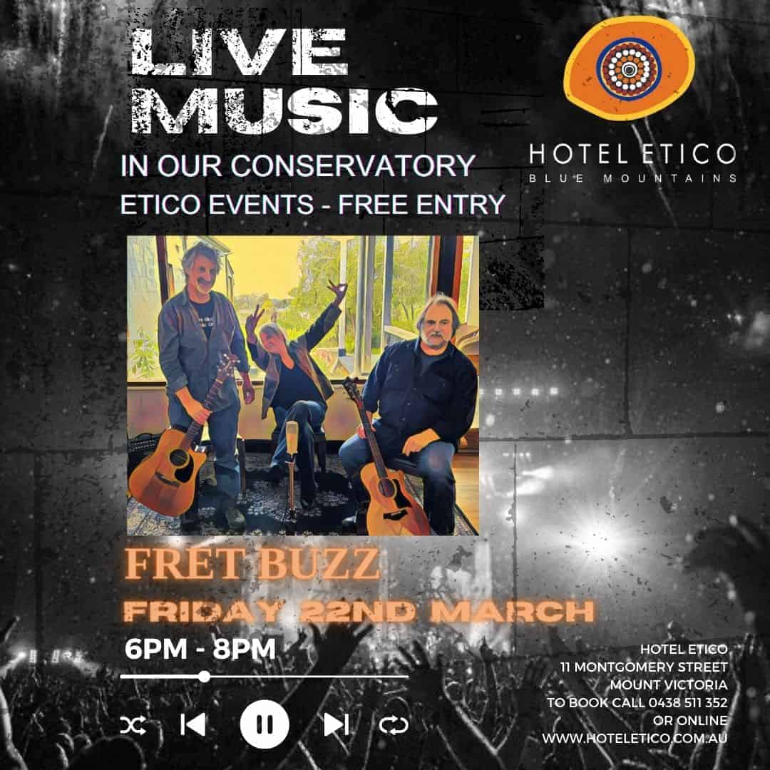 Fret Buzz describe their music as Indie Folk meets Dive Bar Blues. A mix of select covers from Tom Petty, John Prine, Gillian Welch to AltFolk classics and original songs evoking edgy themes, ethereal grooves and traditional vocal harmonies.