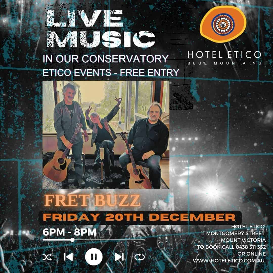 Fret Buzz describe their music as Indie Folk meets Dive Bar Blues. A mix of select covers from Tom Petty, John Prine, Gillian Welch to AltFolk classics and original songs evoking edgy themes, ethereal grooves and traditional vocal harmonies.