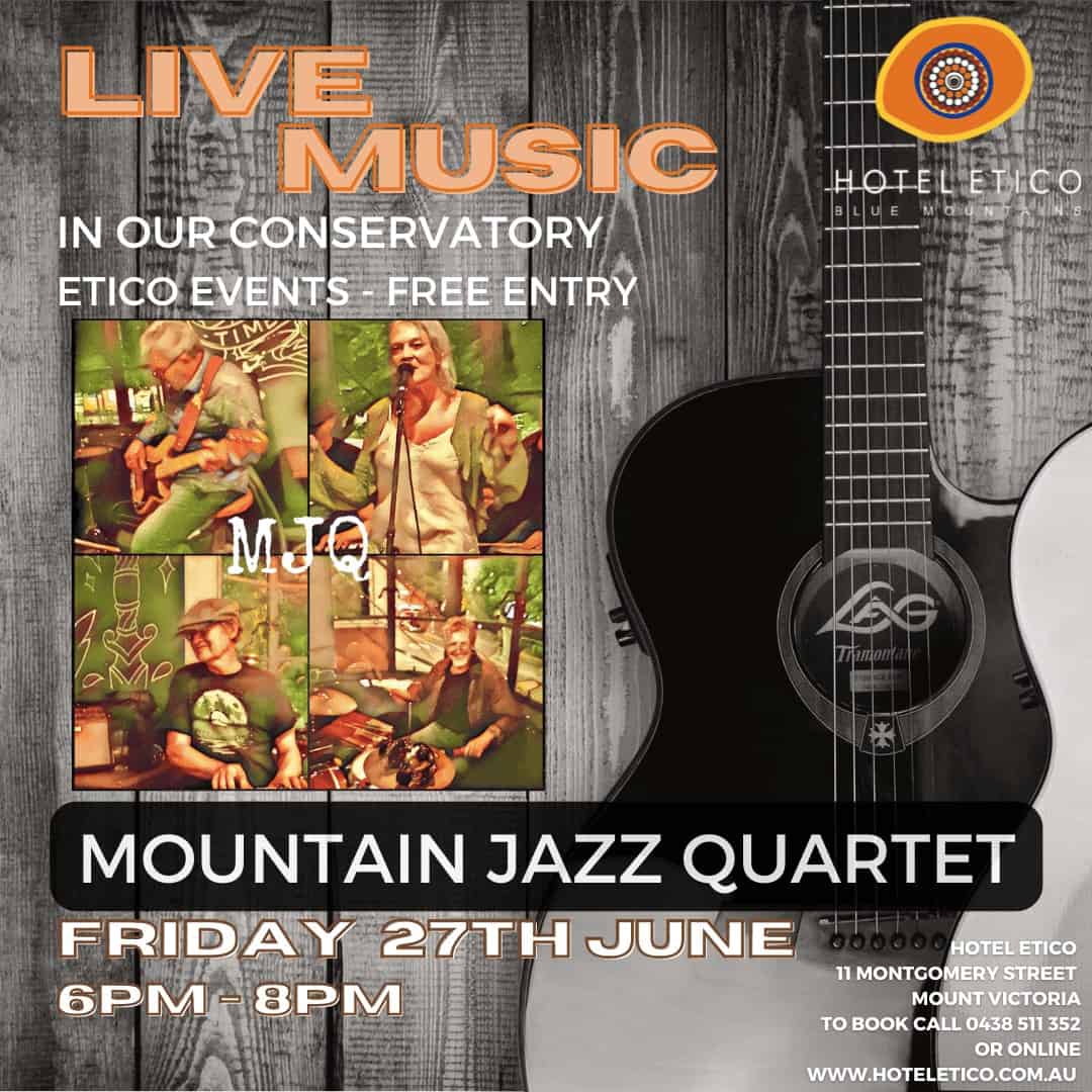 MJQ are excited to bring their blend of cruisy groovy jazzy tunes to the beautiful conservatory at Hotel Etico. Playing a broad range of songs, including although not restricted to, classic jazz, latin, blues, soul, ballads; Ella Fitzgerald, Aretha Franklin, Gil Scott Heron, Tom Waits, Al Green…music that spans the early 1900’s to today.