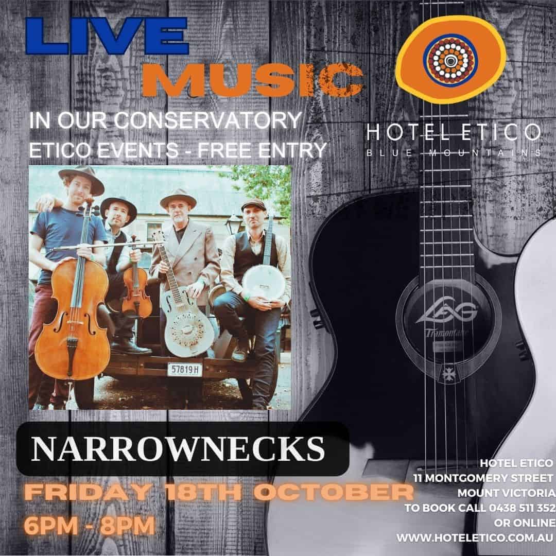 With American old time string band roots, Narrownecks are based in Sydney, Australia. Fiddler David Hoffmann (USA) is a multi-generation old time musician, and has been surrounded by the music of the Appalachian mountains since he was in the womb. Clawhammer banjo player Harry O’Donovan (CHW) has brought a love for Indian and world music to the folk scene, and incorporates his traditional frailing banjo style and exceptional ear to fill out the melodies. Brother John (of The Blues Preachers) is one of Australia’s leading finger-style and blues guitarists. His solid rhythms and guitar mastery hold down the bottom end. Cellist Jack Ward (The Penny Quartet, Australian Chamber Orchestra emerging artist 2017) brings a lifetime of classical training and adds an element of virtuosity to help fill out this unique sound. Whether stomping along to a traditional 19th century fiddle tune, or humming along to a three part vocal harmony.